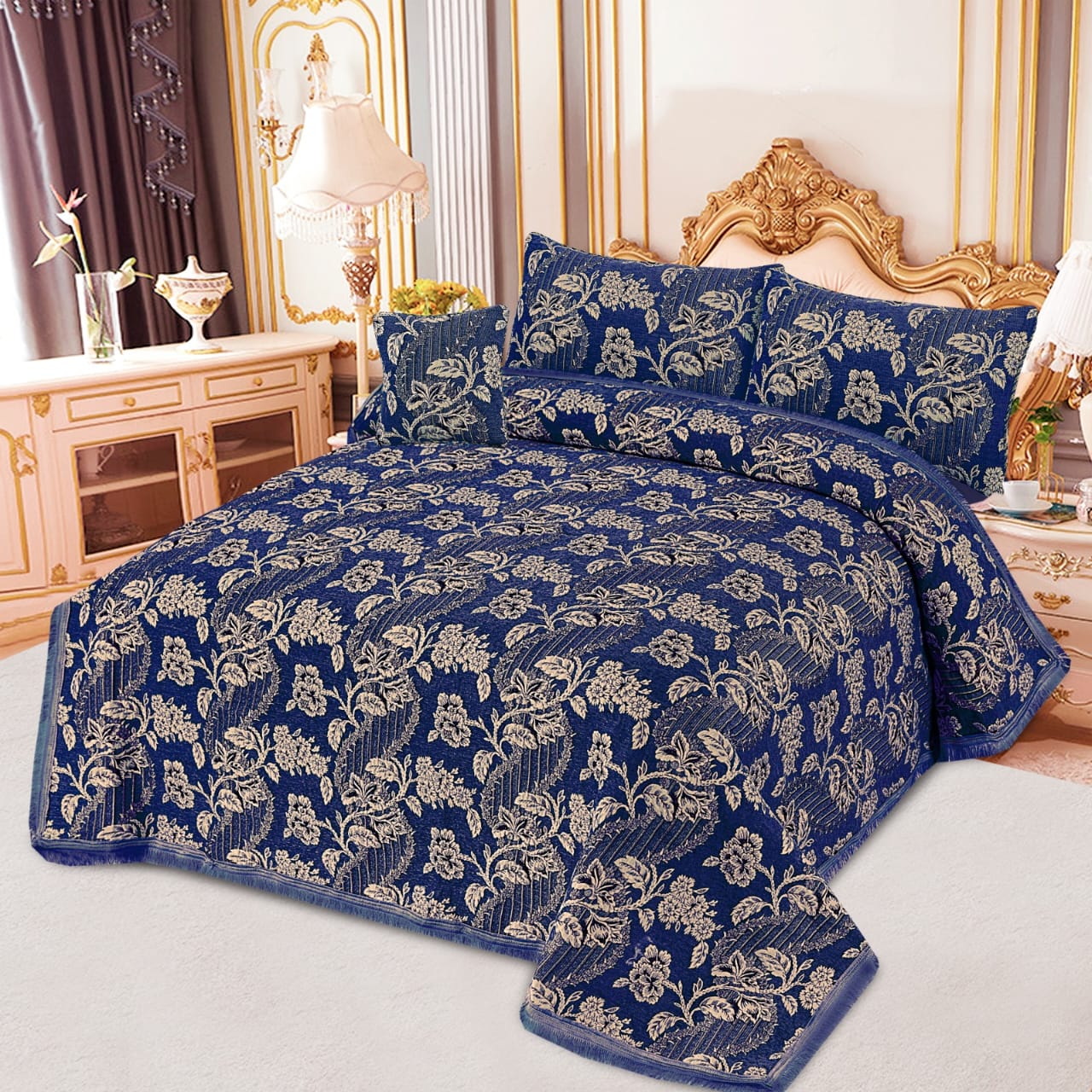 JACQUARD LUXURY BLUE BEDSHEET SET