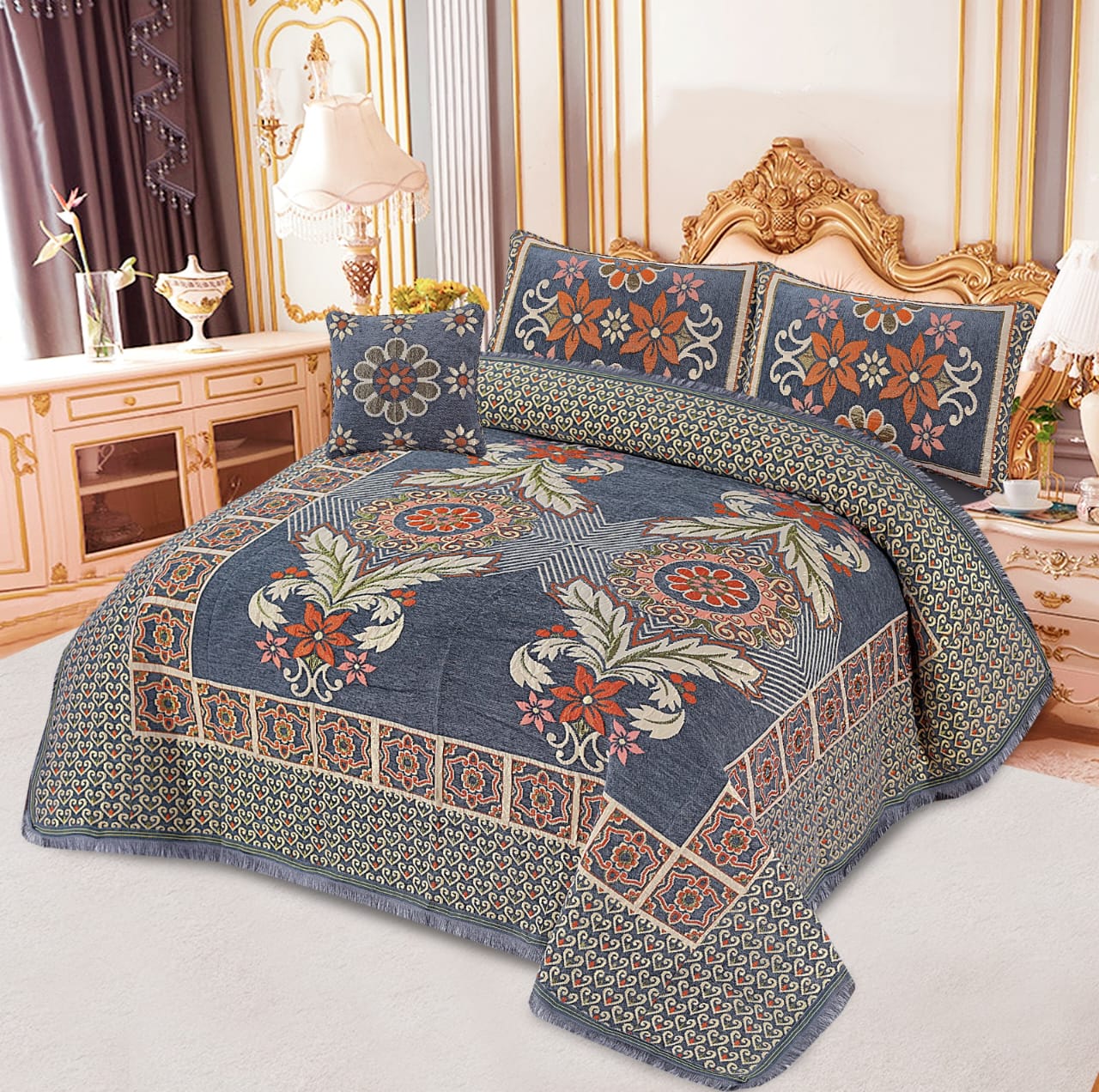 JACQUARD LUXURY LIGHT BLUE BEDSHEET SET